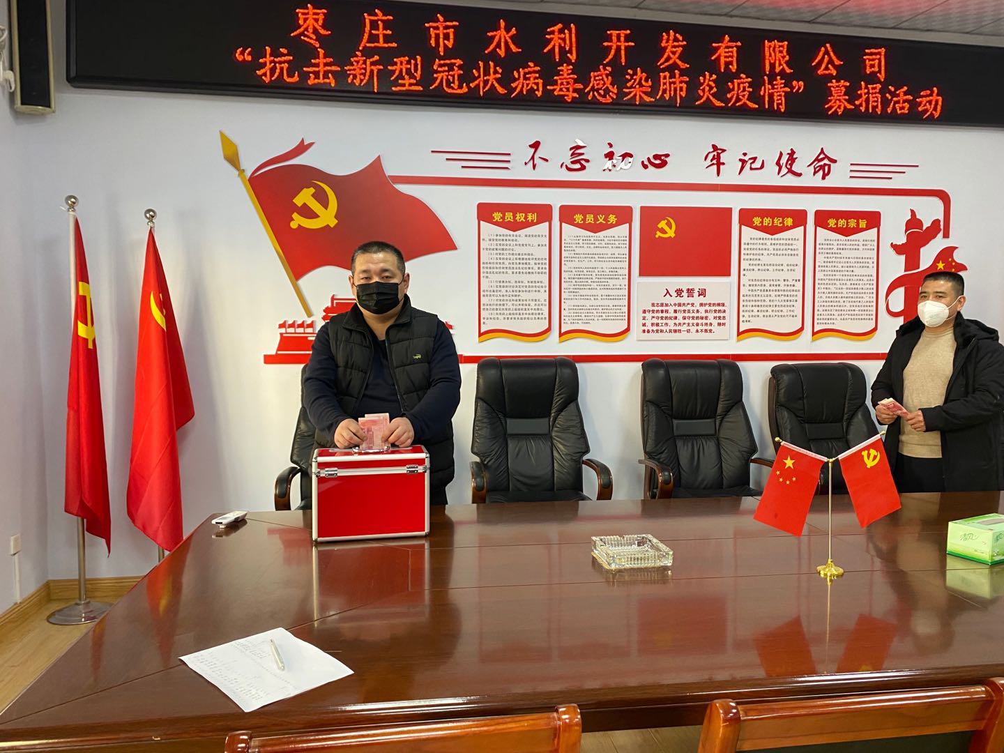 疫情無情,人間有愛。為支持新冠肺炎疫情防控工作,棗莊市水利開發(fā)有限公司執(zhí)行董事、總經理岳磊攜公司全體黨員干部職工,于3月2日組織開展了抗擊疫情獻愛心捐款活動,以捐款的方式支援疫情防控工作,積極為抗擊疫情貢獻力量。